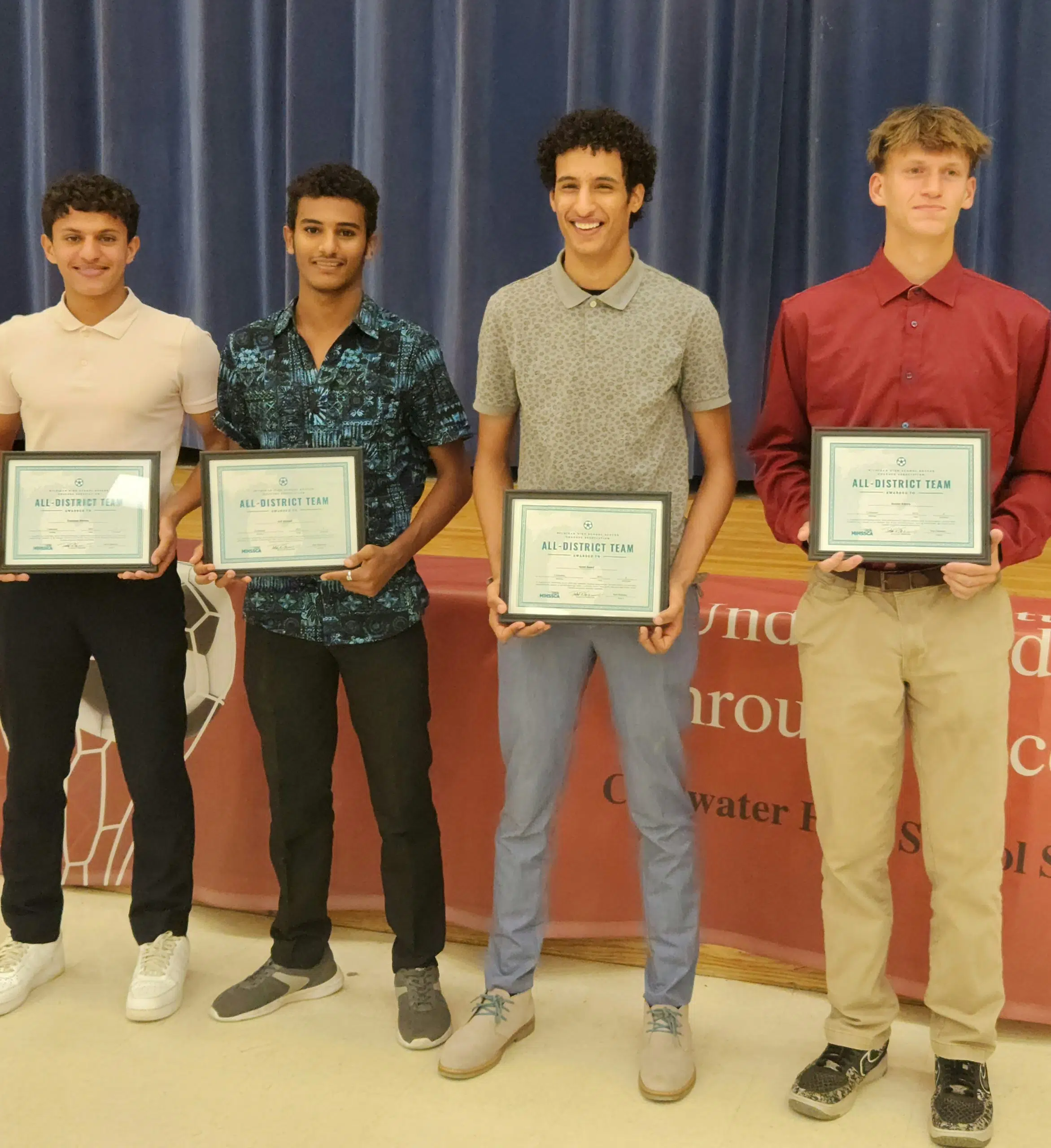 Juniors Arif Ahmed, Ezaldeen Ahmed, and Nabil Saied, along with senior Austin Atkins were named to the Michigan High School Soccer Coaches Association All District Team, while seniors Steven Covell and Yasin Yehya were named Division 2 Academic All State.