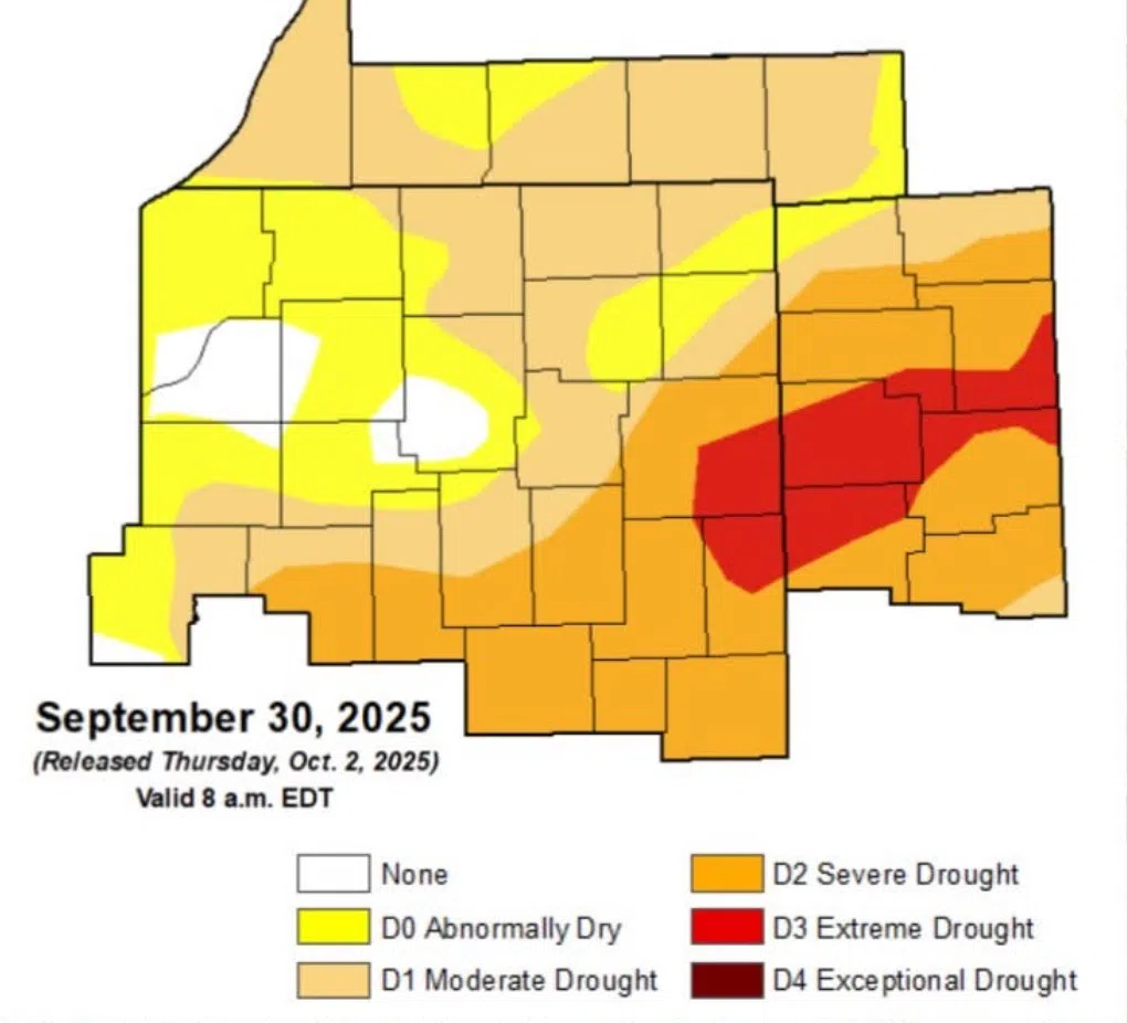 COLDWATER, MI (WTVB) – The latest version of the US Drought Monitor was released this morning and shows drought conditions expanding north and now encompass all of Branch County.