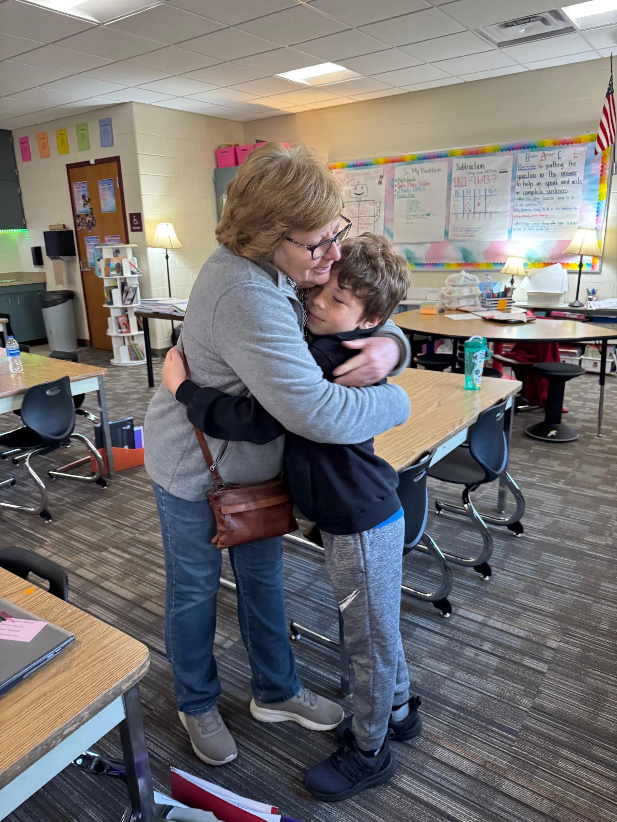 Retired teachers Neva Lounds and Nancy Mahle served as “adopted grandparents” for students whose grandparents could not attend.