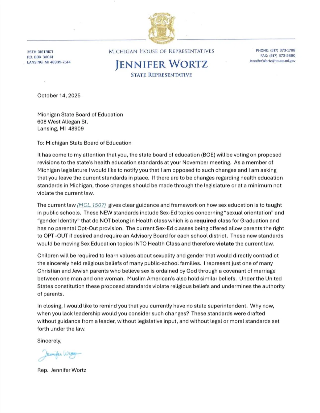 LANSING, MI (WTVB) – Branch County’s State Senator and State Representative are pushing back against newly proposed health standards by the State Board of Education that they say could include sexual topics and concepts.