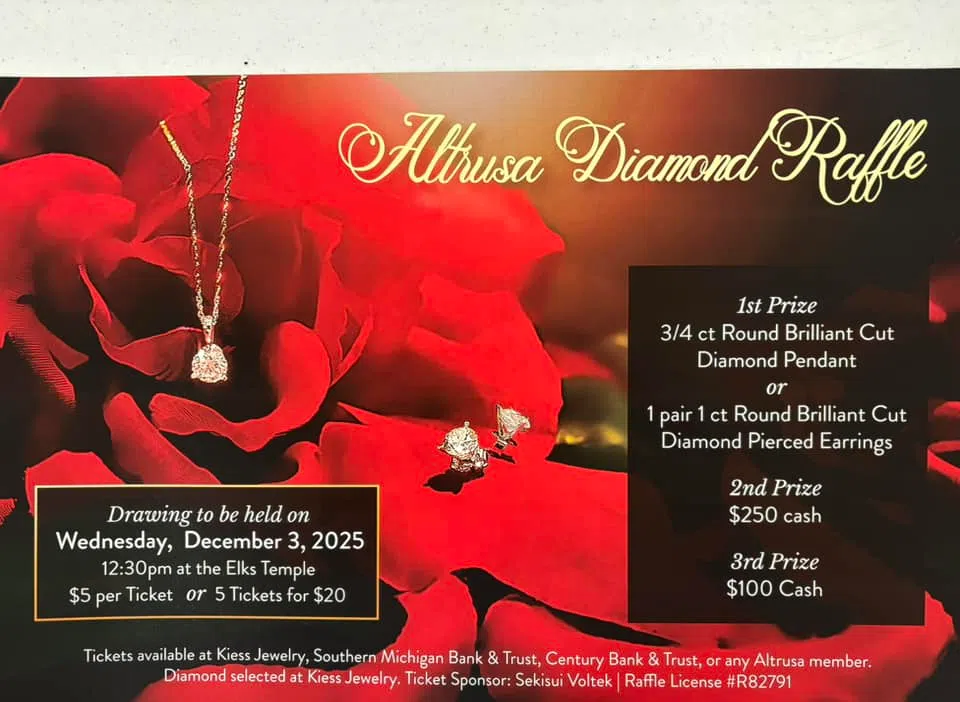 Time is of the essence, as the deadline to purchase tickets is imminent. Tickets are available from any Altrusan member,Kiess Jewelry, Southern Michigan Bank & Trust, or Century Bank & Trust.