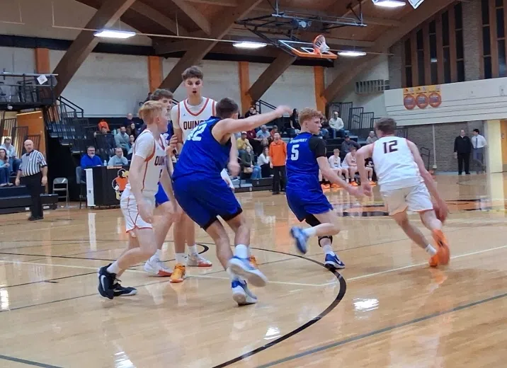 QUINCY, MI (WTVB) – The Springport Spartans clinched at least a share of the Big 8 Conference boys basketball championship in emphatic fashion on Tuesday night as they romped to a 68-37 victory over the Quincy Orioles in the Coolest Gym in Michigan.
