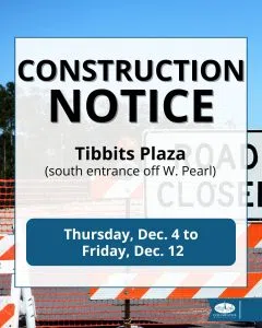 Temporary closure at Tibbits Plaza south entrance for utility work